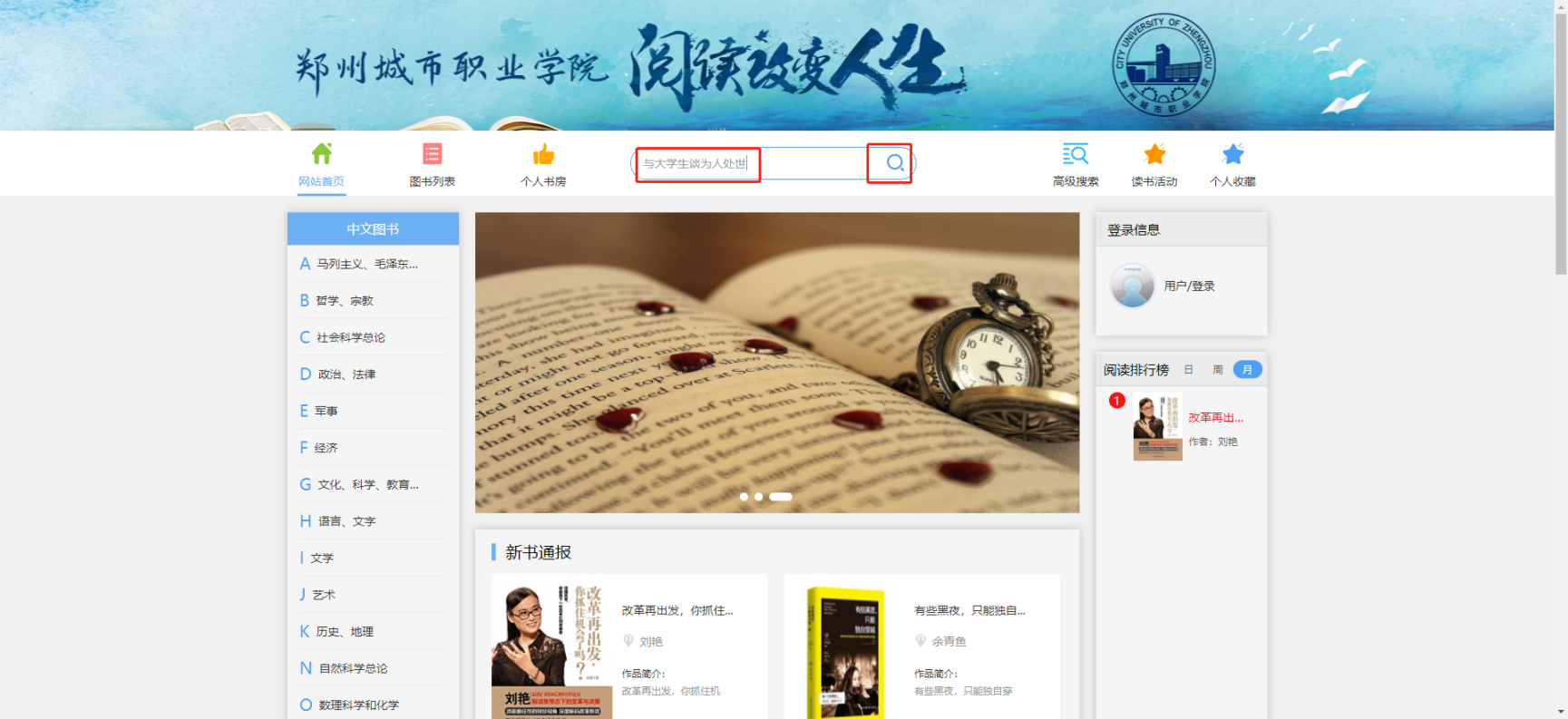 第二步:找到检索框,输入书名、作者等信息,查找你要的图书。